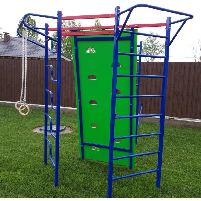 The multifunctional sports complex consists of various horizontal bars, a climbing wall and other sports elements that will provide children with sports leisure time.