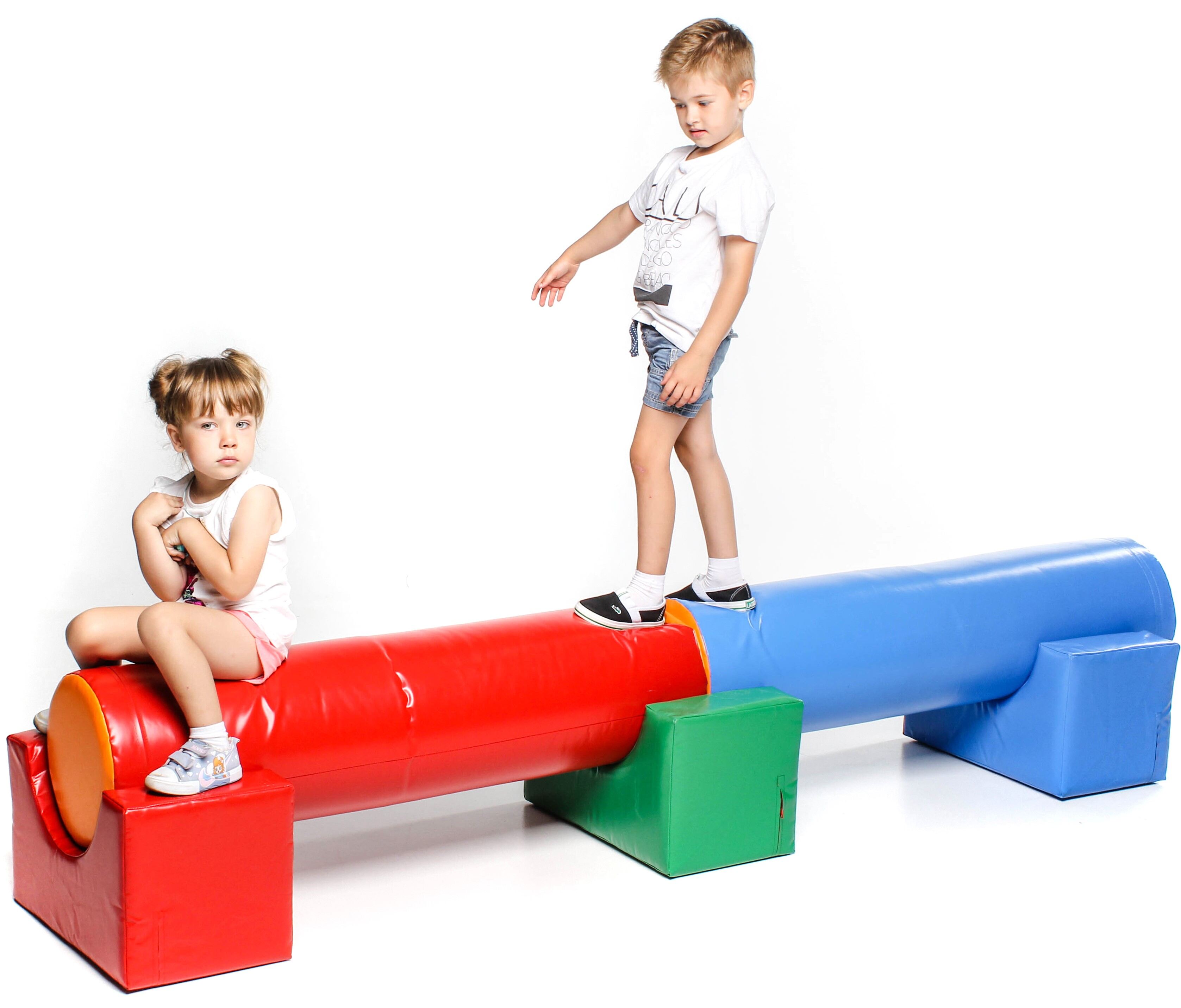 Колод KIDIGO состоит из 5 мягких разноцветных фигур. Бревно прекрасно развивает координацию и ловкость. Отсутствие острых, твердых углов обеспечивает безопасность детей во время игры.