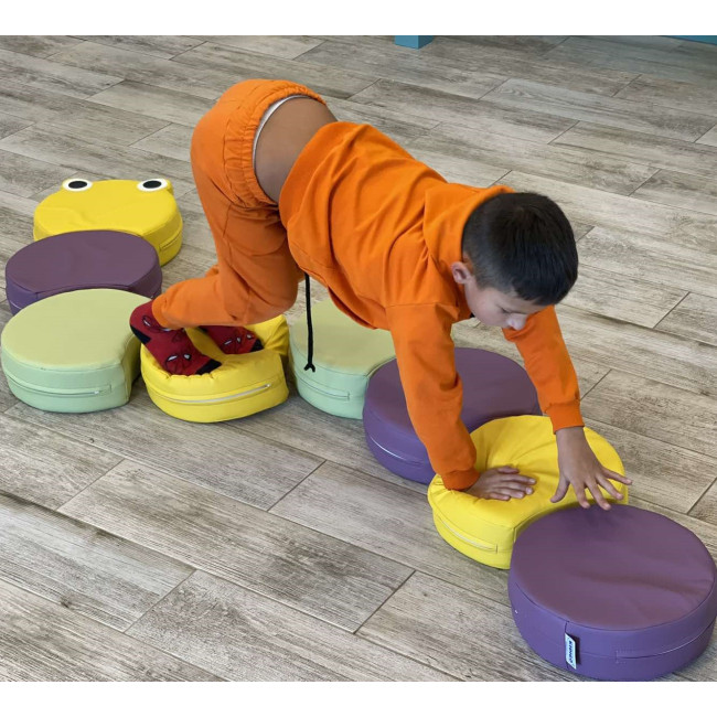 Дорожка-тренажер «Лягушка» представляет собой дорожку, состоящую из 8 элементов размером 0,3х0,3х0,1 метров каждый. Задача участников игры –ndash; прыгать или бегать по ним, складывать в разном порядке. Игра забавная, интересная, а главное полезна для активности ребенка, его здоровья и физического развития. Компактно складывается и хранится.