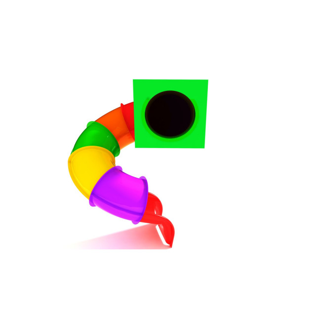 Данная модель имеет спиральную форму с закрытым трубным спуском, что делает катание более захватывающим и одновременно защищенным. Конструкция привлекает внимание детей яркими цветами и плавной траекторией движения, а спуск обеспечивает комфортное и безопасное скольжение.