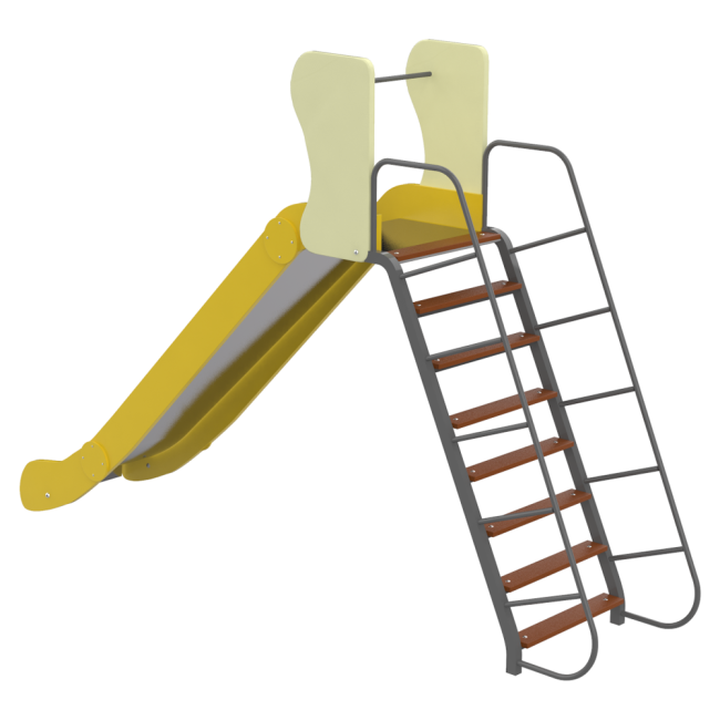 Детская горка обеспечивает детям веселый досуг, а также развивает вестибулярный аппарат, координацию движений, моторику, укрепляет мышцы. Такое изделие идеально подходит для уличной детской площадки, дачи или загородного дома. Горка может служить как дополнение к детской площадке или как отдельный игровой элемент. Классическая детская горка с металлическим спуском с защитными щитами, стремянкой с металлическими перилами.