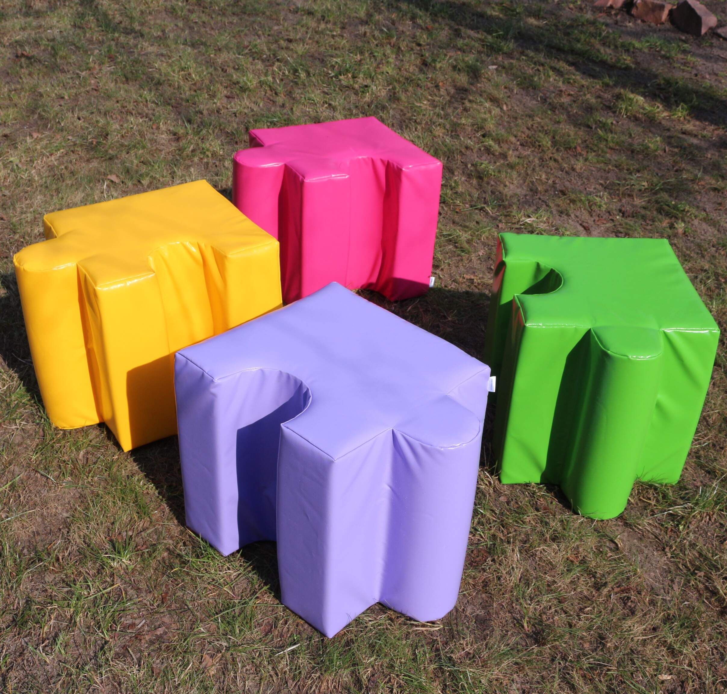 Комплект детских пуфов Мозаика KIDIGO состоит из 4 разноцветных мягких деталей в форме пазлов. Данный набор развивает у детей конструкторские способности, логику и смекалку. С модулями можно играть, собирать как пазл, сидеть на них, лазить и прыгать. Небольшая масса позволяет детям самостоятельно передвигать эти модули. Отсутствие острых, твердых углов обеспечивает безопасность малышей при игре. Комплект пуфов производится из материалов, устойчивых к износу. Пуфы долговечны, не вызывают аллергии, не впитывают запахи и влагу, не выгорают на солнце и устойчивы к загрязнениям.
