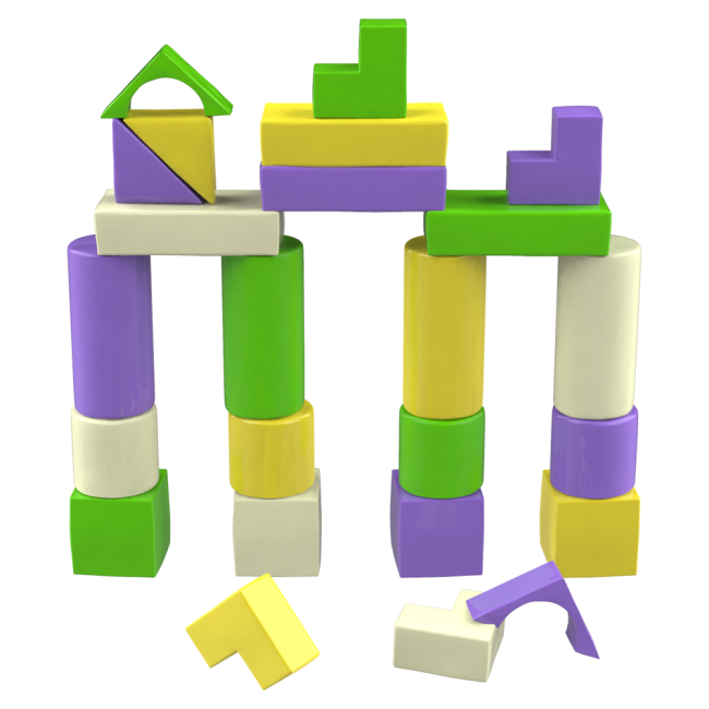 Конструктор «Строитель-3 Мини» KIDIGO состоит из 24 геометрических мягких модулей, 7 фигур. Модули используются для творческого конструирования. Отлично развивают у детей воображение и моторику. Юные строители имеют под рукой разнообразные детали, подходящие для возведения всегда интересных конструкций. Мягкий поролон, которым наполнены элементы, прекрасно смягчает падение. Небольшой вес фигур при значительном объеме позволяет легко передвигать их даже малышам. А при обрушении даже большого количества элементов дети не получат травмы. Конструкторы производятся из материалов, устойчивых к износу. Они долговечны, не вызывают аллергии и быстро восстанавливают форму. Конструктор не впитывает запахи и влагу, не выгорает на солнце и устойчив к загрязнениям.