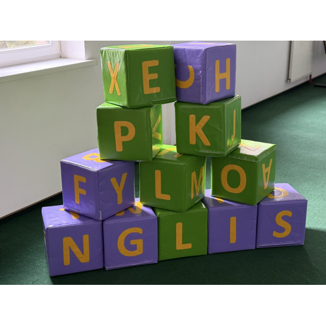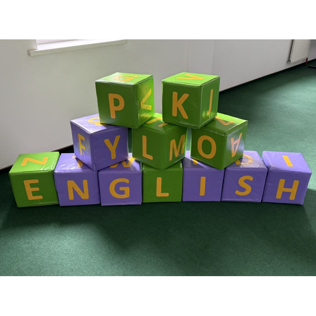 Игровые фигуры с английскими буквами предназначены для обучения в формате игры. С помощью кубиков можно учить алфавит, составлять слова или просто строить различные конструкции во время игры, а также использовать их как пуфики для сиденья.