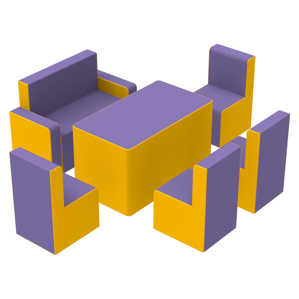 Яркая, удобная, мягкая и безопасная детская мебель из поролона, обтянутого разноцветной полимерной тканью, которая легко моется, для детских игровых комплексов, комнат и площадок. Модули могут изготавливаться с полноцветной печатью или аппликациями на боковых стенках. Мебель используется для оформления интерьера и организации детских игр. Ассортимент включает качели, стульчики, пуфы и мебельные наборы, которые могут изготавливаться как предложенным комплектом, так и отдельными модулями по желанию заказчика. Мебельные модули достаточно легкие, это позволяет детям самостоятельно их расставлять.
