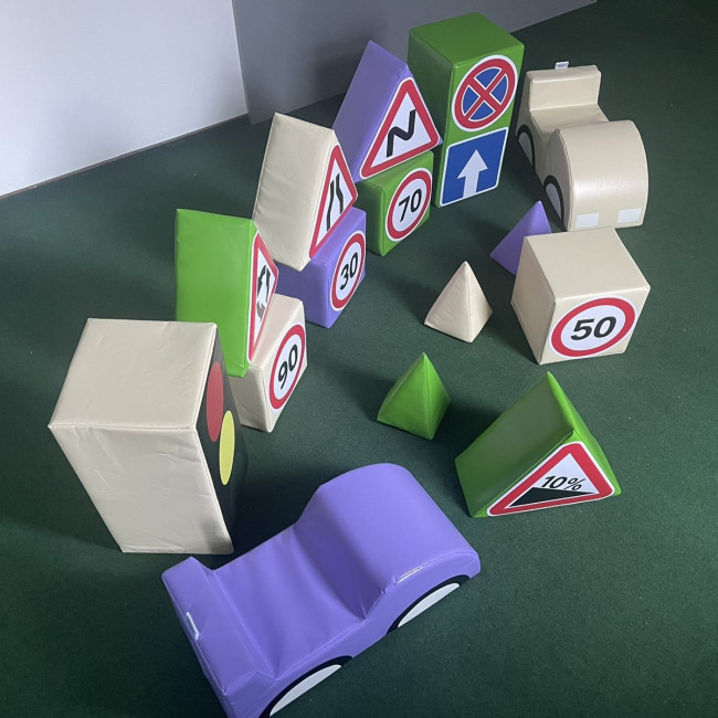 Приятный на ощупь яркий и разноцветный набор поможет малышу научиться элементарным правилам поведения на улице. Из элементов набора можно моделировать возникающие на дороге ситуации и учить ребенка правильно выходить из них. Набор предназначен для детских комнат, развлекательных детских заведений, центров раннего развития и детских садов. Благодаря качественным материалам набор прост в уходе и легко очищается.