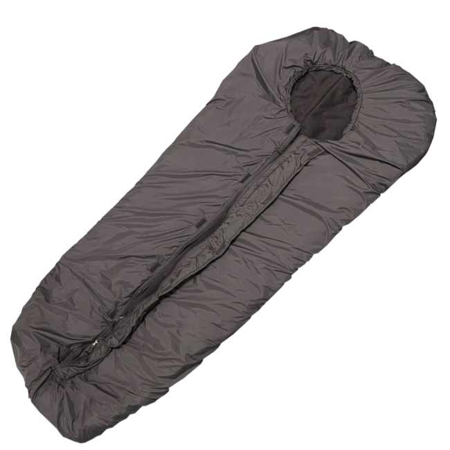 Спальный мешок сшит из водонепроницаемой прочной плащевки.