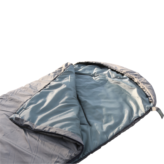 Закрывается спальный мешок на застежке.