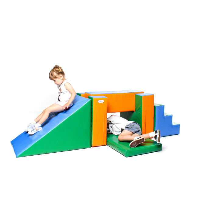Дитячий тренажер «Спорт» складається із 6 модулів. Для безпеки модулі мають місця для скріплення між собою. Модулі можна збирати в різних комбінаціях, що робить цей товар багатофункціональним, цікавим та розвивальним. Можливі будь-які кольорові рішення та виготовлення модулів за індивідуальними розмірами.